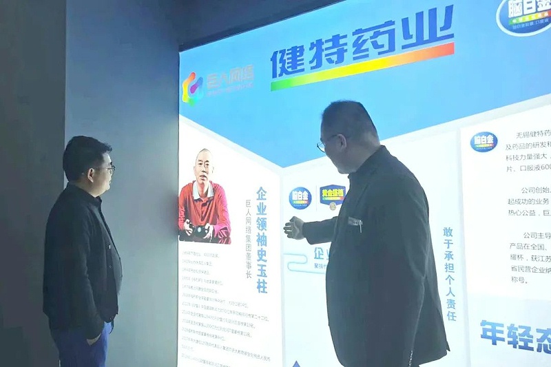 凯发娱乐k8官网药业营销总监孙利、招商一部经理俞婷热情接待了刘总和徐总,对刘总和徐总的到来表示热烈欢迎,并安排工作人员陪同刘总和徐总先后参观了脑白金口服液生产车间、黄金搭档片剂生产车间、凯发娱乐k8官网药业展览馆等企业展示区域。